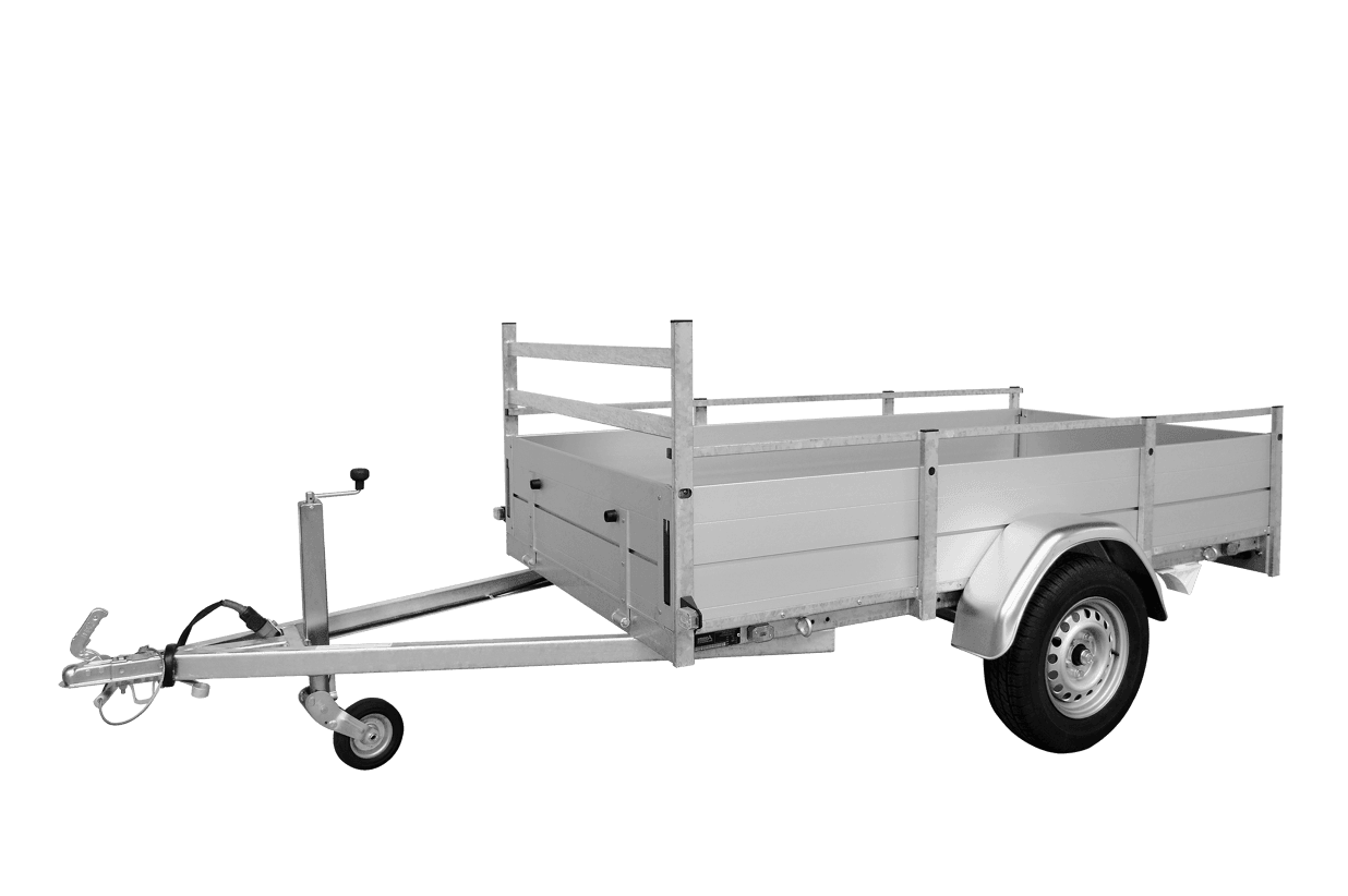 Dankzij de wielen naast de laadbak is de aanhangwagen stabiel en comfortabel te rijden, zelfs bij volle belading. De verlichting rondom maakt u goed zichtbaar in het verkeer.