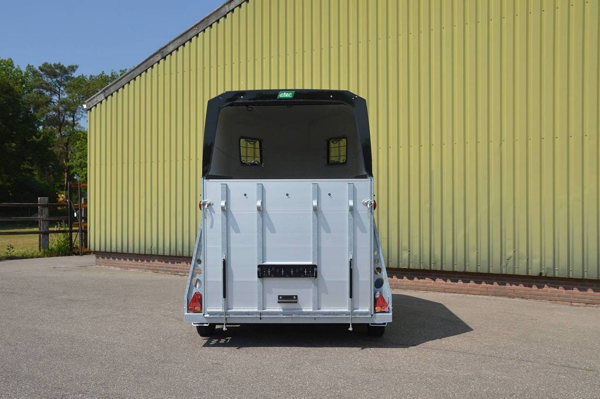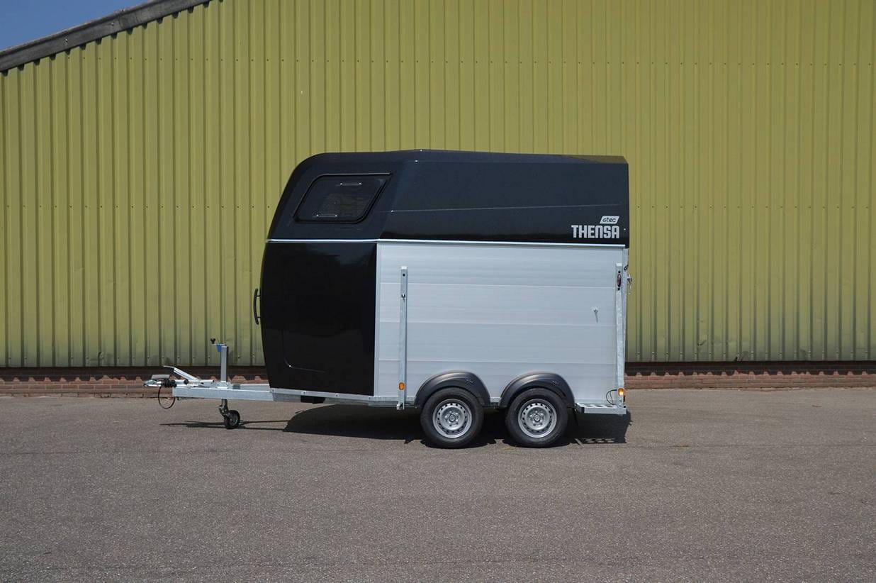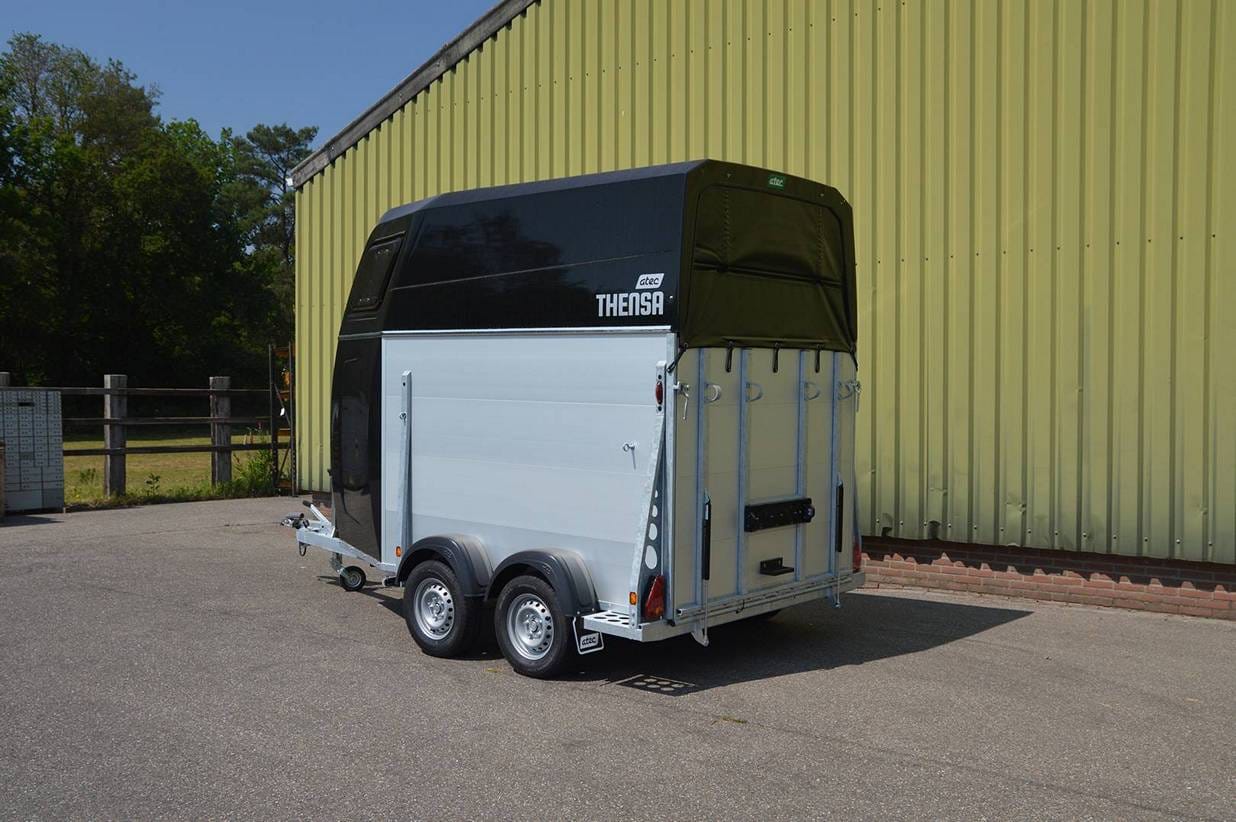 De Atec Thensa APT 2000 is een stijlvolle en moderne paardentrailer die ideaal is voor het veilig en comfortabel vervoeren van twee paarden, zowel voor dagelijks gebruik als voor wedstrijden en langere ritten. Dankzij de combinatie van een sterke aluminium constructie en een elegante zwarte polyester kap biedt deze trailer een perfecte mix van stevigheid, comfort en design.