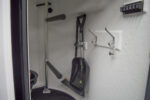 Opbergruimte, bezem, schep, hoofdstelhouders, haak hooinet, spiegel, verlichting