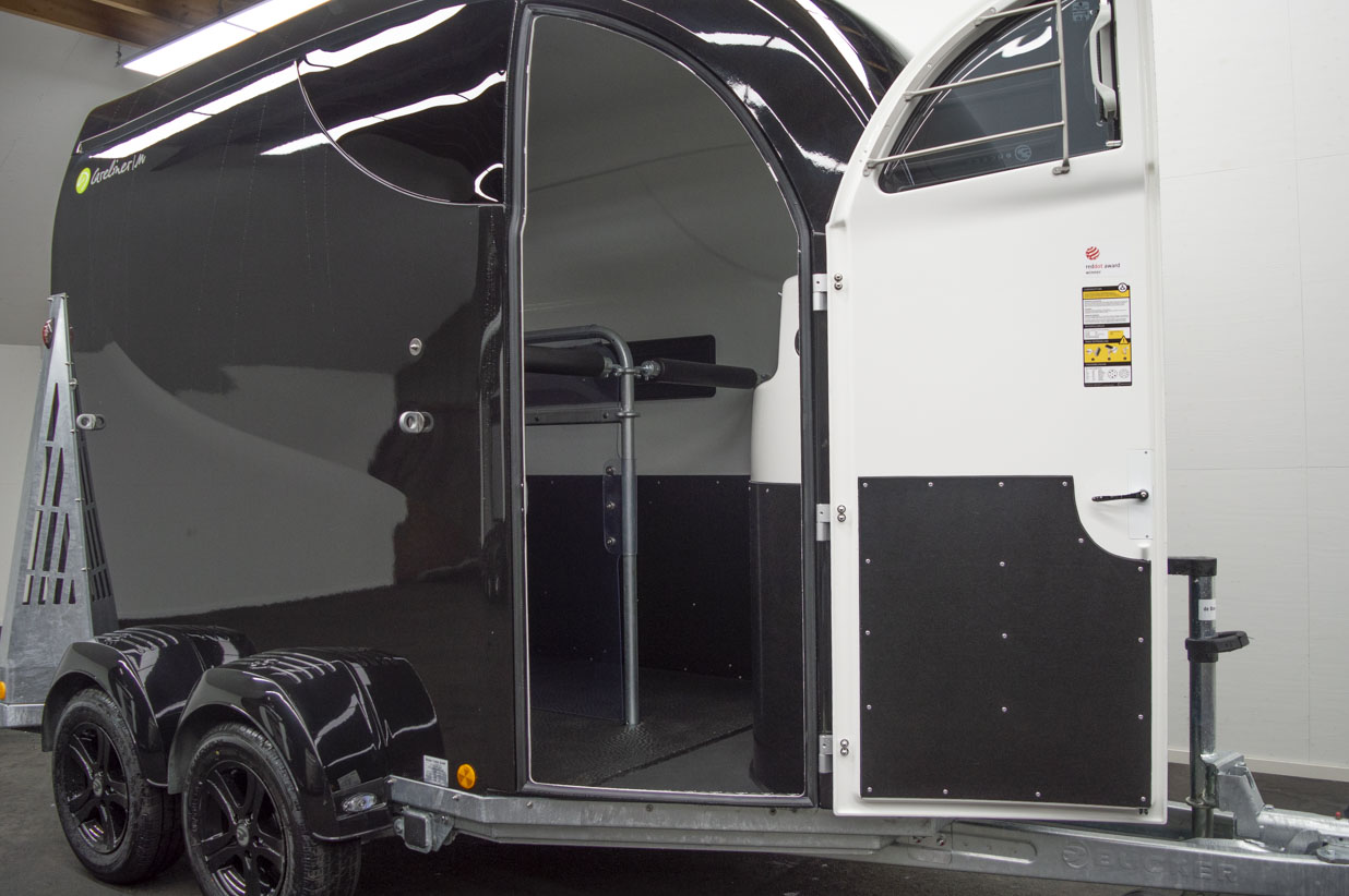 De CARELINER|M overtuigd door drie principes: Stabiliteit, comfort voor de bestuurder en een aangename omgeving voor het paard tijdens vervoer. Dit wordt mogelijk gemaakt door een groot aantal innovaties – bijv. het unieke Bücker LONG LIFE-systeem met verrottingsvrije materialen, de manshoge toegangsdeur, een LED sfeerverlichting voor het laden en lossen ´s nachts en een ergonomische werkomgeving die het paard ontspant. En dan ziet hij er ook nog eens waanzinnig goed uit. Niet voor niets heeft dit Bücker ontwerpconcept de red-dot Award ontvangen.
