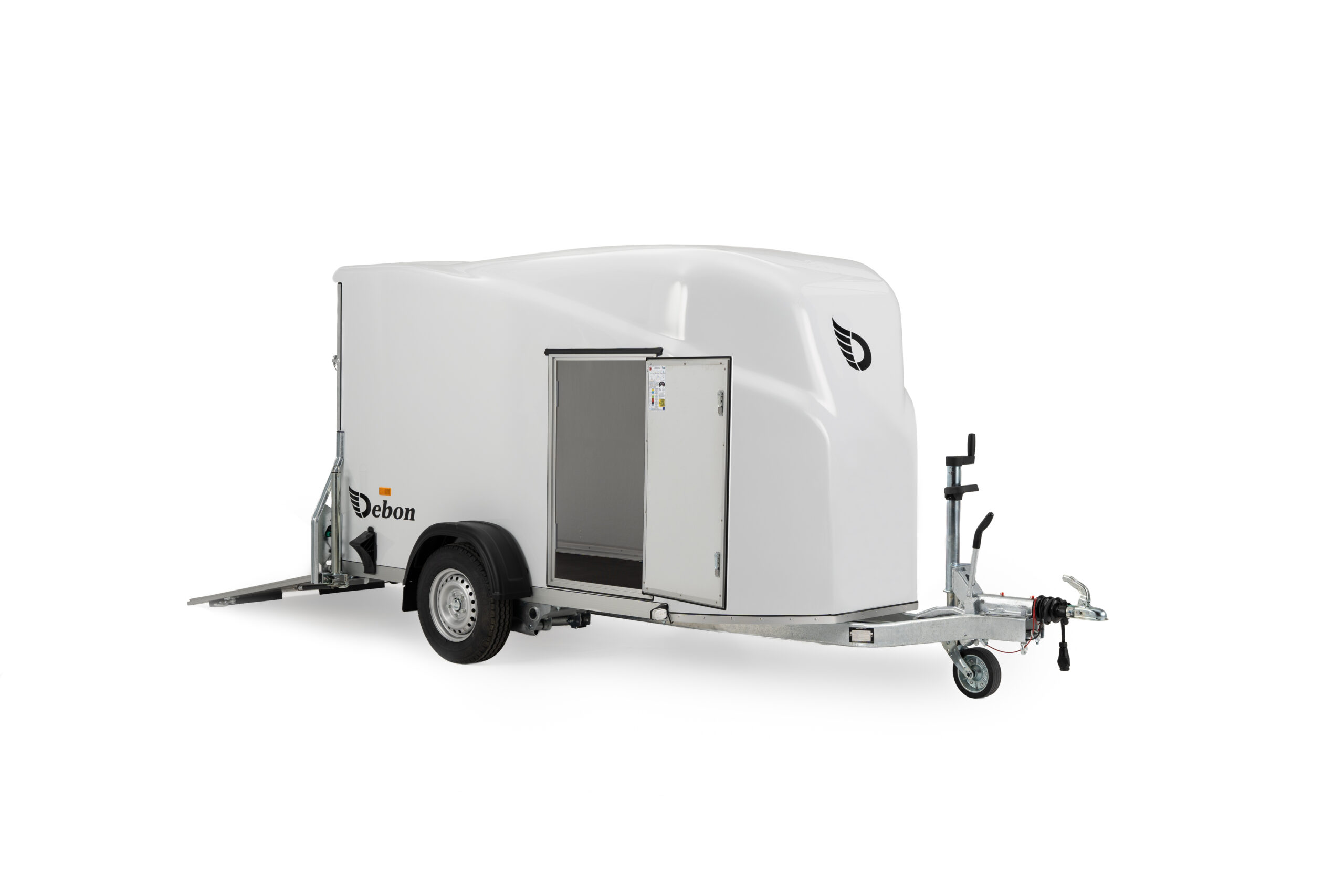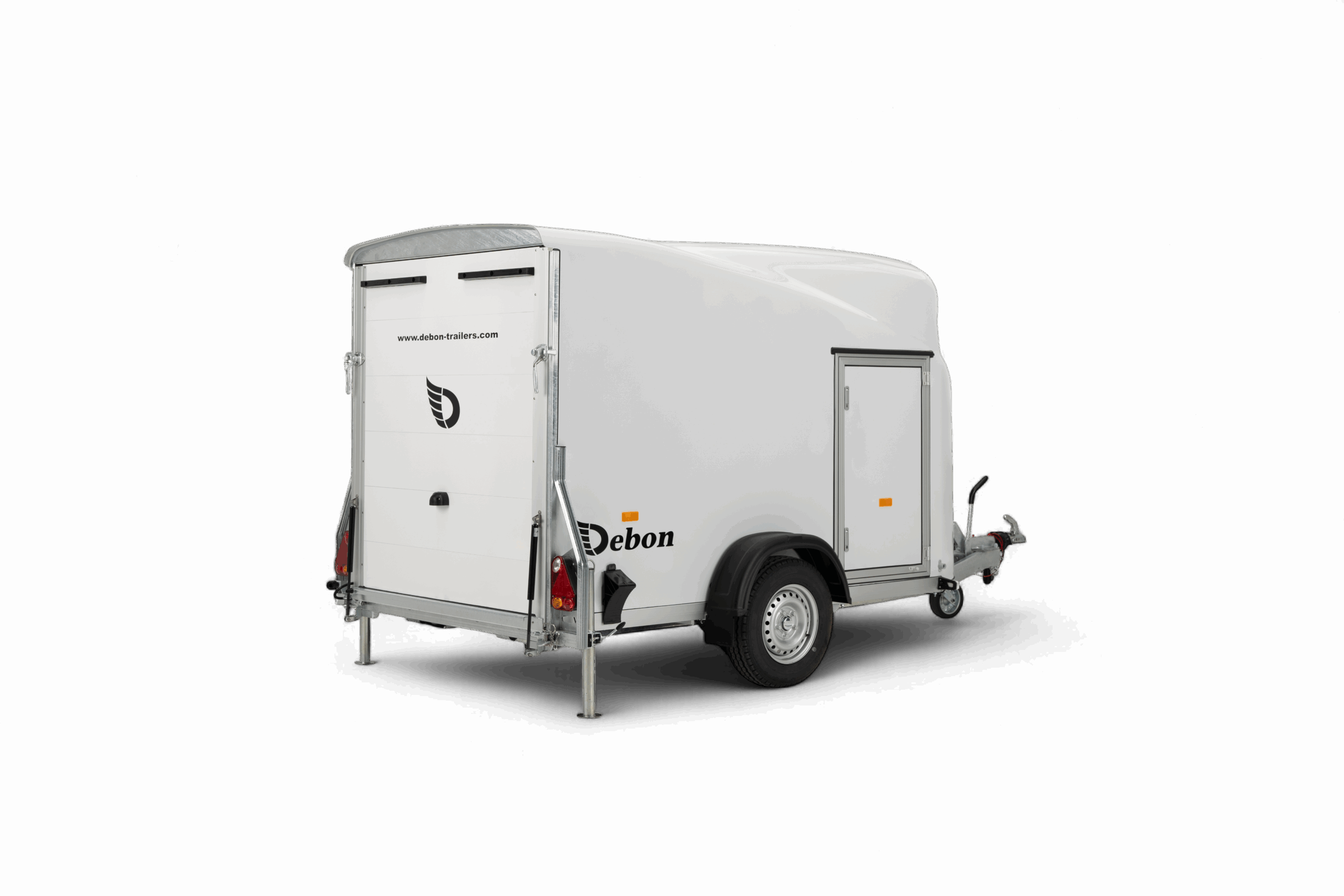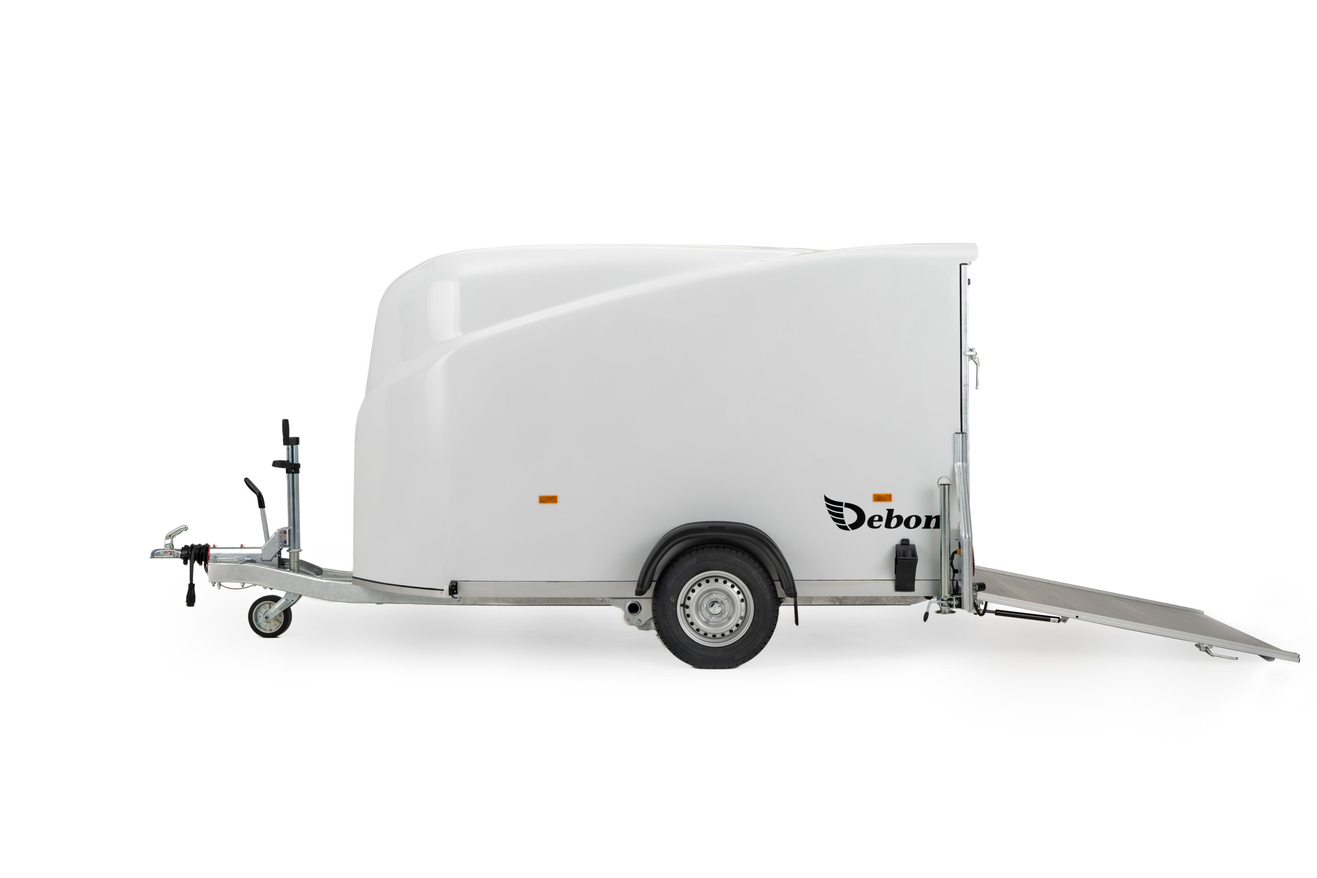 De Debon Cargo 1300 is een compacte en aerodynamische gesloten aanhangwagen, ontworpen voor het veilig vervoeren van diverse goederen en materialen. Dankzij het gestroomlijnde polyester design en het verlaagde, vuurverzinkte chassis combineert deze aanhangwagen stijl met functionaliteit. Ideaal voor zowel professioneel als particulier gebruik. Met een laadvermogen van 855 kg en een binnenafmeting van 300 × 165 × 152 cm biedt de Debon Cargo voldoende ruimte voor allerlei transporttoepassingen. De aluminium achterklep met geïntegreerd klep- en deursysteem zorgt voor eenvoudig laden en lossen, terwijl de Pullman 2-vering met schokbrekers garant staat voor een stabiele wegligging en optimaal rijcomfort. De aanhangwagen is standaard uitgerust met onder andere binnenverlichting, steunpoten, een antislipvloer, aanbindringen en een automatisch neuswiel met rangeergreep. Voor wie extra gemak wil, zijn er ook opties zoals een afsluitbare zijdeur, motorsteun of aluminium velgen beschikbaar. Of u nu goederen, motoren of werkmateriaal vervoert, de Debon Cargo biedt een betrouwbare, veilige en stijlvolle transportoplossing voor elke gebruiker.