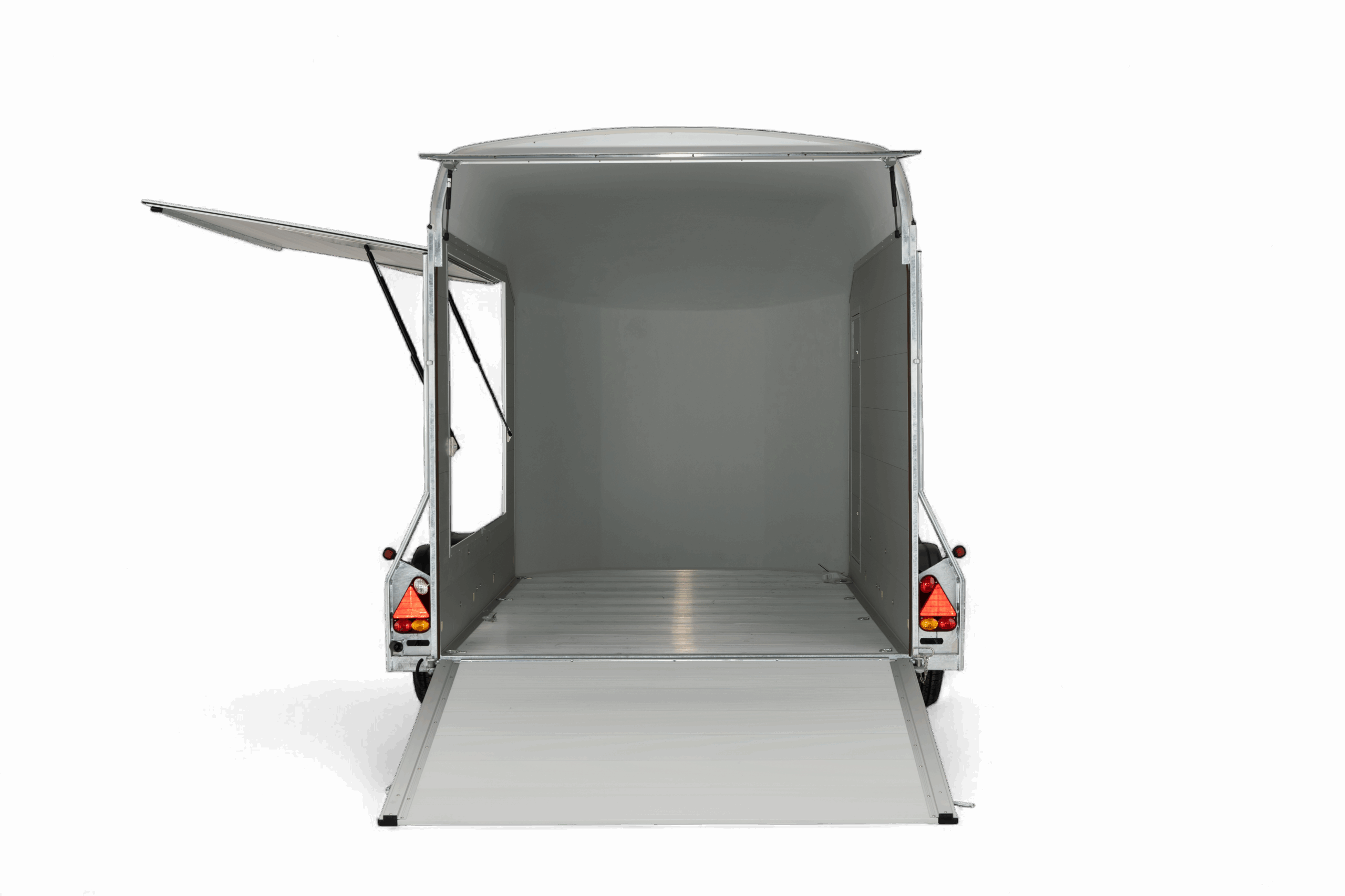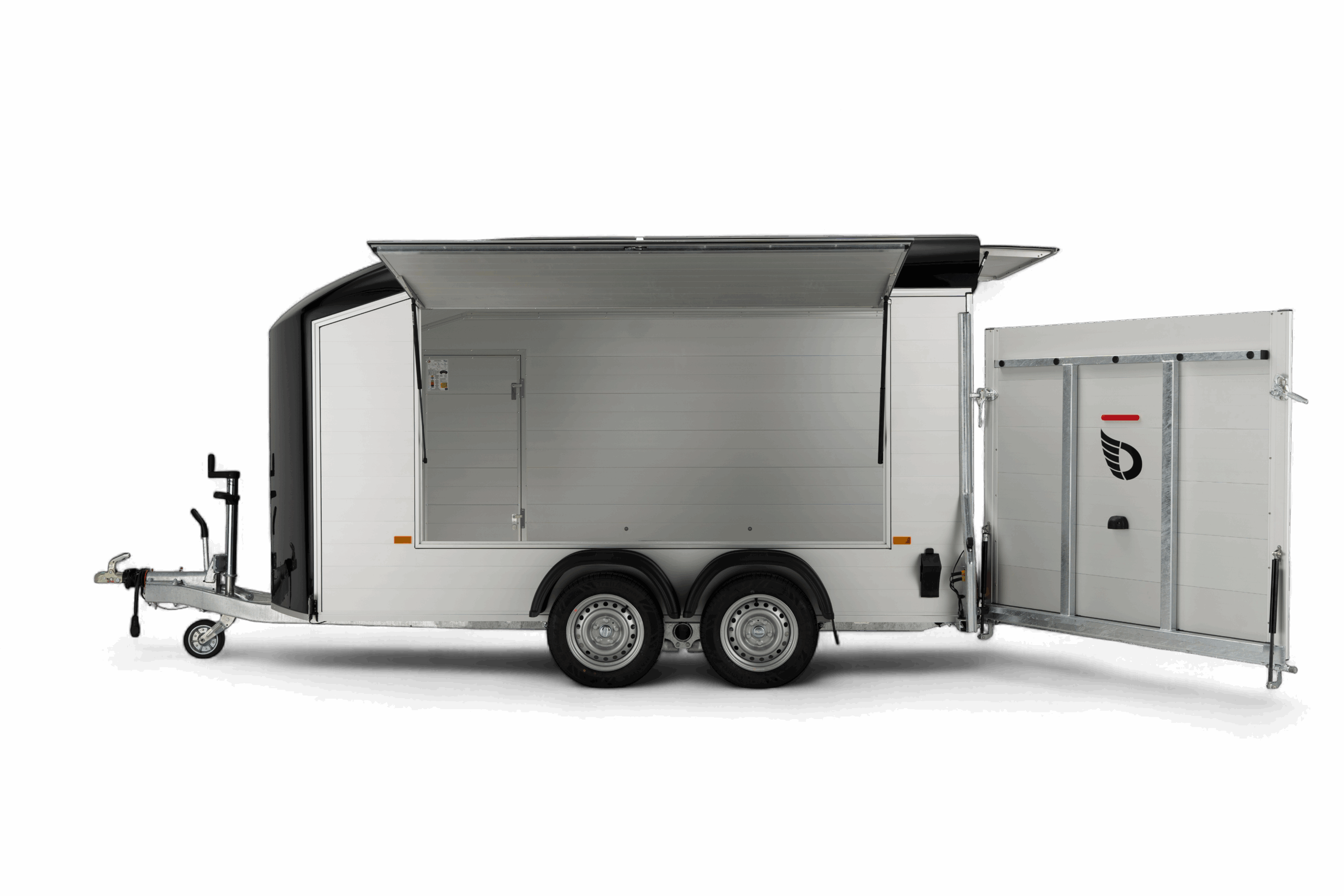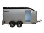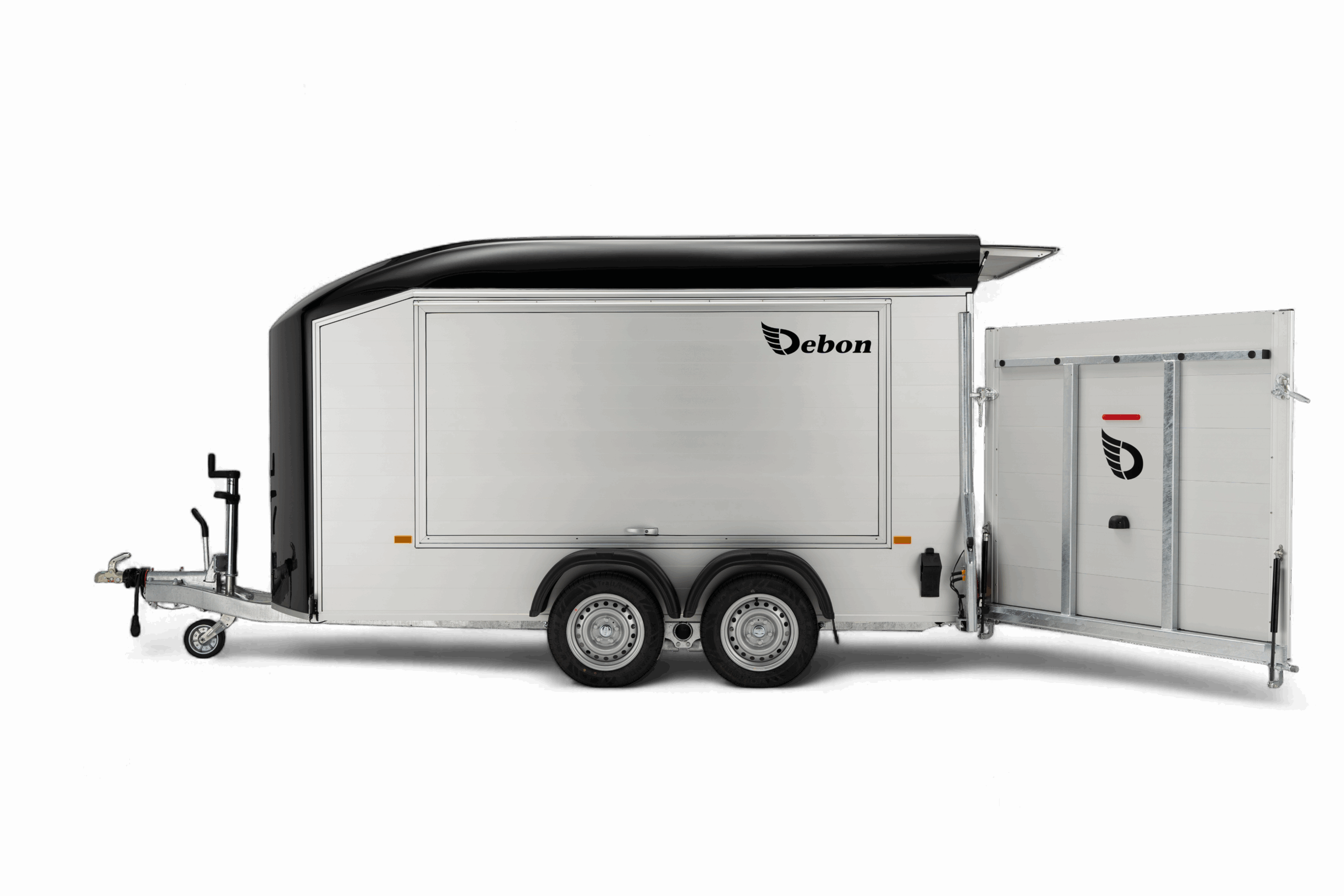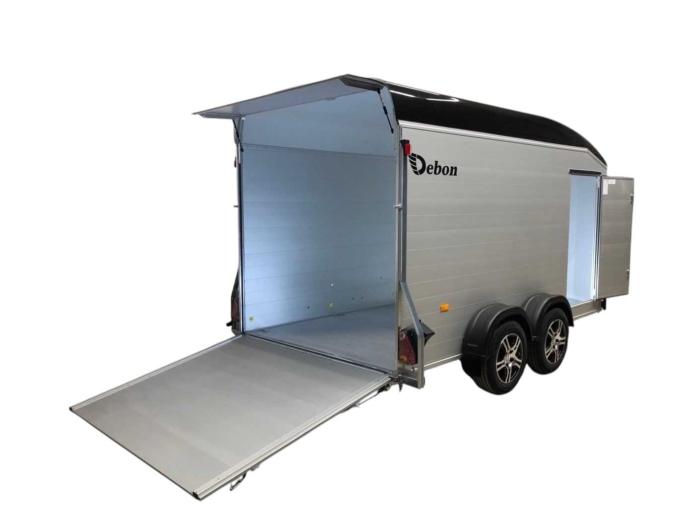 De Debon Roadster C700 Aluminium is een gesloten tandemasser aanhangwagen die uitblinkt in kwaliteit, veiligheid en gebruiksgemak. Deze robuuste aanhangwagen is ideaal voor het vervoeren van motoren, quads, gereedschap of andere volumineuze goederen. Zowel voor particulier als professioneel gebruik. Dankzij de sterke aluminium wanden en de lage vloerhoogte van slechts 33 cm is laden en lossen bijzonder eenvoudig. De zijdeur en de combinatie van klep en deur bieden extra flexibiliteit bij het inladen van materialen, voertuigen of machines. De verzinkte constructie in combinatie met het Pullman 2 veersysteem met schokbrekers (standaard bij Debon) zorgt bovendien voor een stabiele en comfortabele wegligging, ook bij hogere snelheden of zwaardere belading. Met een laadvermogen van 1995 kg en royale binnenafmetingen van 372 × 181 × 195 cm biedt de Roadster C700 volop ruimte voor uiteenlopende transporttoepassingen. Binnenin is de trailer voorzien van zes sjorogen voor het veilig vastzetten van de lading, binnenverlichting en een automatisch opklapbaar steunwiel voor extra gebruiksgemak. De Debon Roadster C700 combineert een stijlvol en aerodynamisch design met praktische functionaliteit, een betrouwbare, duurzame en veelzijdige oplossing voor iedereen die professioneel of privé op zoek is naar een kwalitatieve gesloten aanhangwagen.