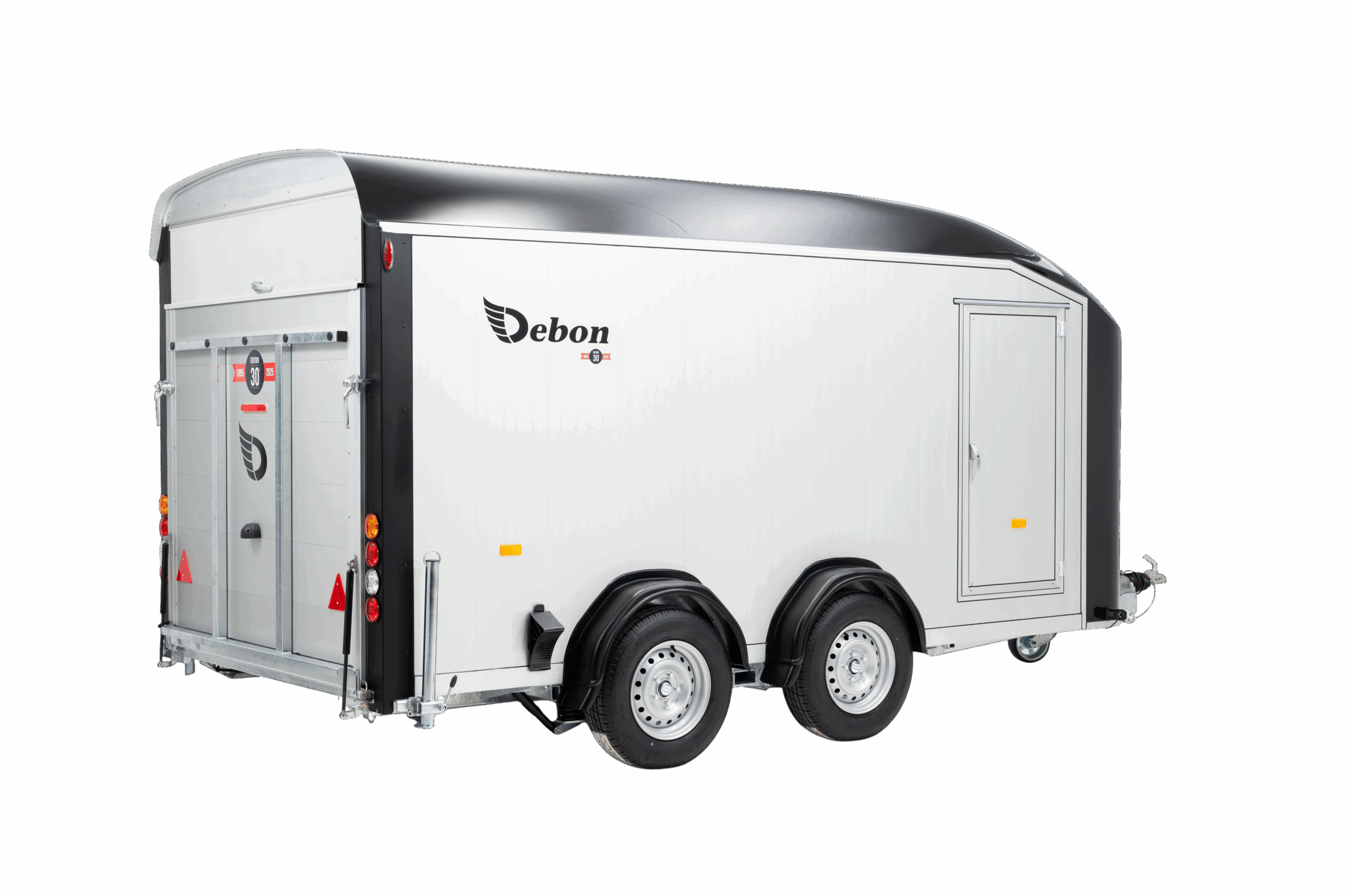 De Debon Roadster C800 Aluminium + zijdeur is een ruime, stijlvolle en hoogwaardige aanhangwagen die ideaal is voor onder andere het vervoeren van voertuigen, machines of waardevolle goederen. Dankzij de stevige aluminium wanden en het Pullman 2 onafhankelijk veersysteem met schokbrekers combineert deze gesloten aanhangwagen stabiliteit, comfort en veiligheid in één ontwerp. De afsluitbare zijdeur zorgt bovendien voor extra gemak: u heeft snel toegang tot de laadruimte zonder de achterklep te hoeven openen. Ideaal bij het laden, lossen of controleren van de lading onderweg. Met een indrukwekkend laadvermogen van 2500 kg en een royale bakmaat van 441 × 177 × 180 cm biedt de Debon Roadster voldoende ruimte voor het vervoeren van grote en zware ladingen. De antislipvloer en de aluminium bodem zorgen ervoor dat alles stevig op zijn plaats blijft tijdens het rijden, terwijl het verlaagde vuurverzinkte chassis zorgt voor extra stabiliteit en een veilige wegligging. Dankzij het slimme ontwerp, met onder andere een automatisch neuswiel, binnenverlichting en aanbindringen, is de aanhangwagen praktisch in gebruik en klaar voor intensieve inzet. Of u nu professioneel materieel, voertuigen of kwetsbare goederen vervoert, de Debon Roadster biedt een betrouwbare, stijlvolle en duurzame oplossing voor al uw transportbehoeften. Met zijn combinatie van kracht, comfort en gebruiksgemak is deze aanhangwagen een uitstekende keuze voor zowel professioneel als particulier gebruik.