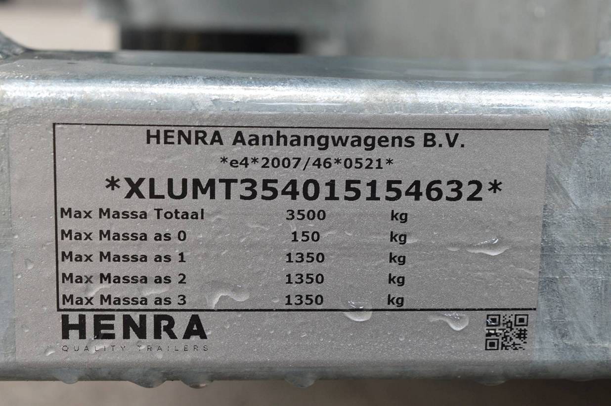 Henra Machine transporter MT354015TR deze aanhanger is voorzien van de volgende opties welke zijn meegenomen in de verkoopprijs: