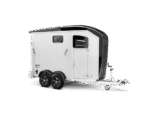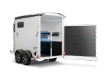 Afsluitbare zadelkamer met uitschuifbare zadelsteun, hoofdstelhouder, spiegel en opbergnet, binnenverlichting, schep en bezem