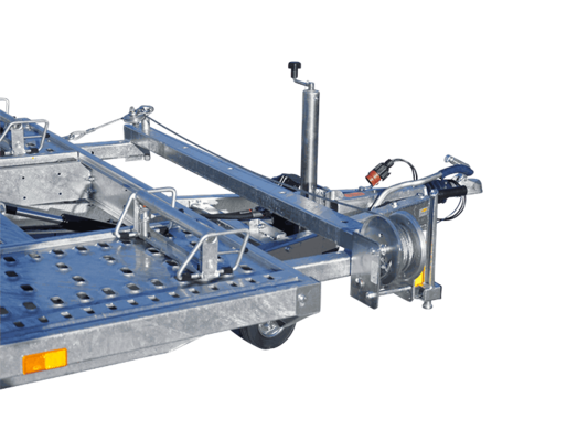 Staalen oprijrails onder het laadvlak uittrekbaar