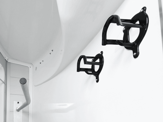 Afsluitbare zadelkamer met zadelsteun, hoofdstelhouder, spiegel en opbergnet, binnenverlichting, schep en bezem