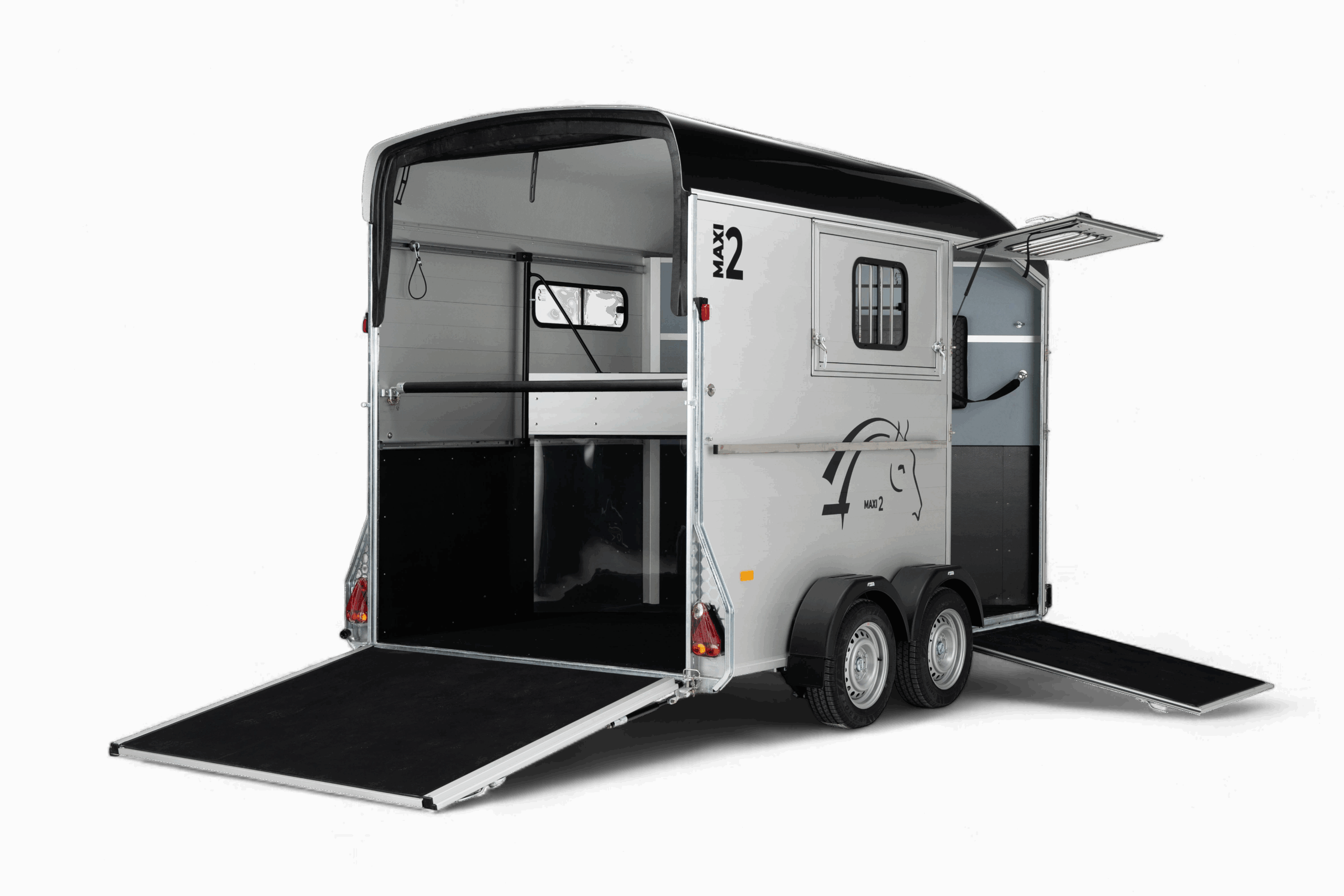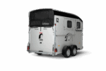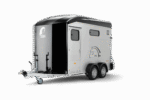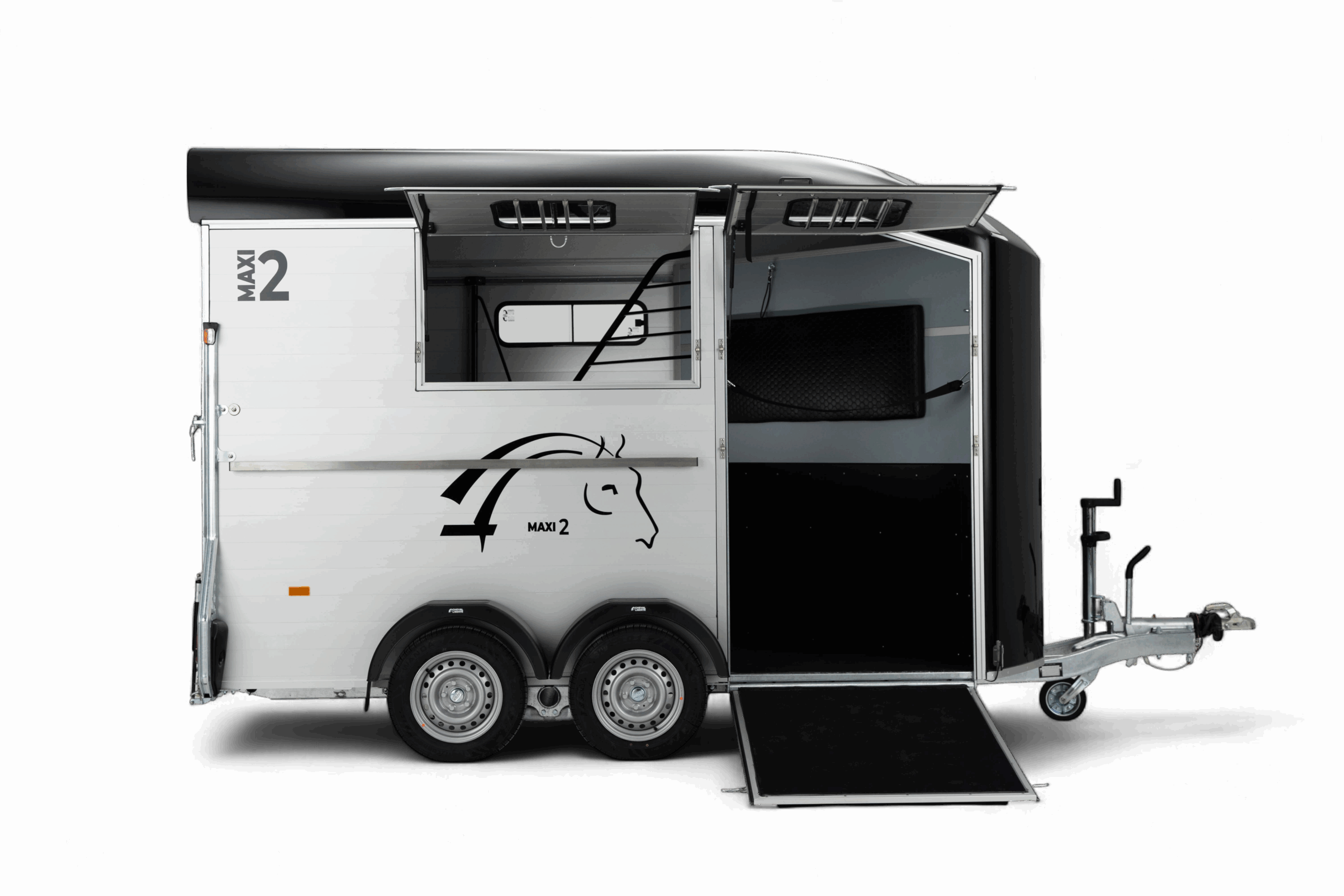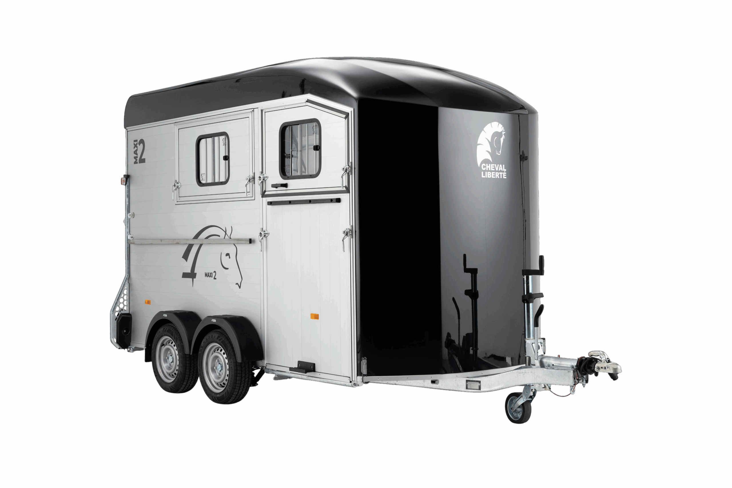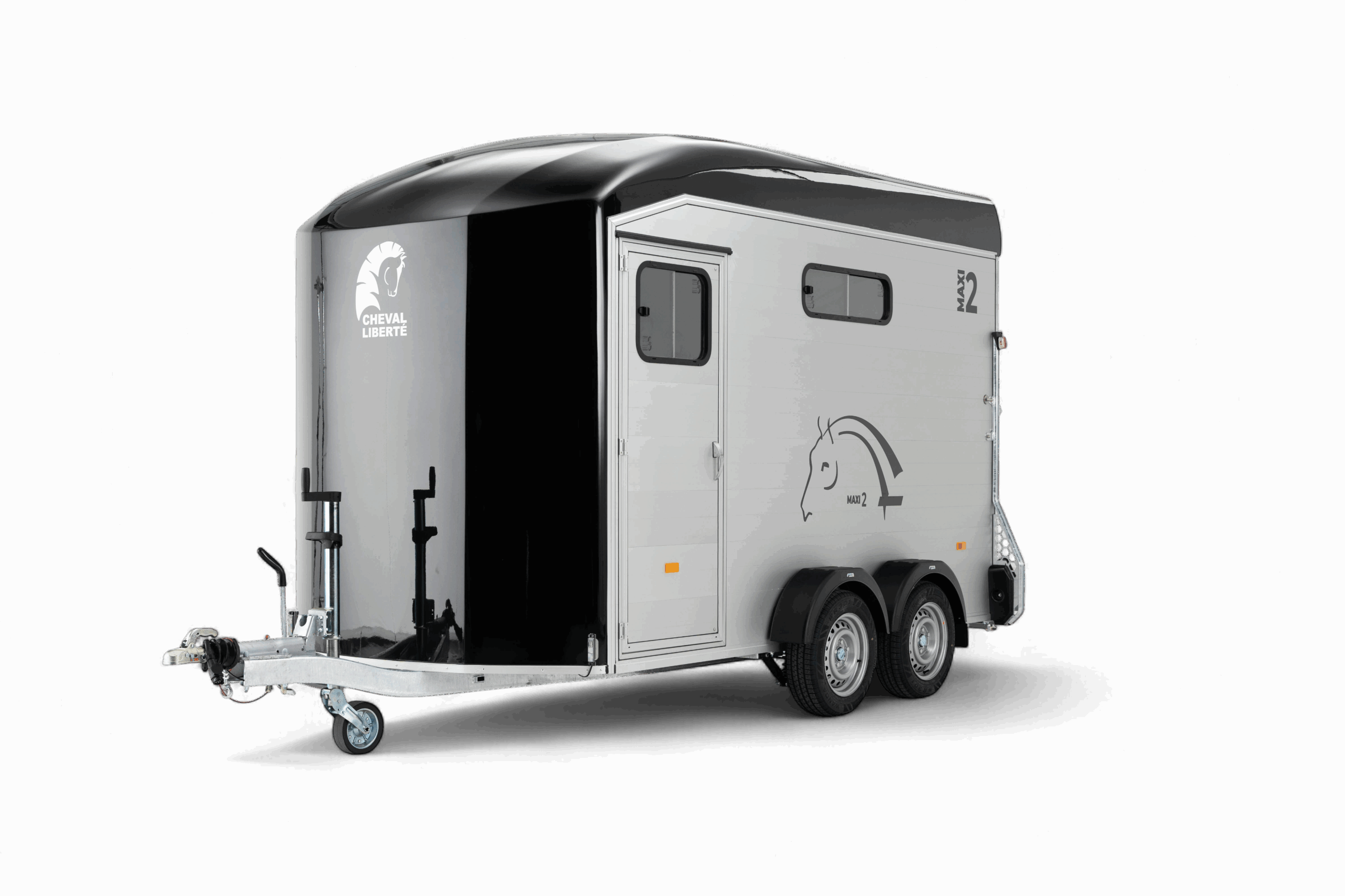 De Cheval Liberté Maxi 2 is een luxe 2-paards paardentrailer met diagonaal laad-systeem (herringbone-opstelling), ontworpen voor optimaal comfort en stabiliteit tijdens het transport. Dankzij deze opstelling kunnen paarden hun benen beter spreiden, wat zorgt voor een natuurlijke balans en minder spanning op het lichaam, ideaal voor paarden die gewend zijn aan transport in vrachtwagens. Met een laadvermogen van 1640 kg en een binnenmaat van 378 × 181 × 240 cm biedt de Maxi 2 uitzonderlijk veel binnenruimte. De trailer is uitgerust met grote schuiframen, een Airtech oprolbaar achterzeil en een Up-and-Away venster, wat zorgt voor uitstekende ventilatie en lichtinval. De verzorgingsdeur met driepuntsluiting en het klep- & deursysteem maken het laden en lossen eenvoudig en veilig. De Maxi 2 combineert een verlaagd, vuurverzinkt chassis met aluminium wanden en bodem, wat resulteert in een sterke, duurzame constructie met een laag eigen gewicht. Binnenin zorgt een verstelbaar tussenschot (keuze uit schuifbaar of in twee delen) met PVC-flap voor flexibiliteit, terwijl de rubberen, verlijmde en afgekitte vloer en trapbescherming bijdragen aan het comfort van het paard. Standaard beschikt deze trailer over een ruime zadelkamer met verstelbare zadelsteunen, spiegel, verlichting, hoofdstelhouders en opbergnet, evenals een RVS aanbindrail, binnenverlichting en automatisch neuswiel. Het geheel rust op het Pullman 2 onafhankelijk veersysteem met schokbrekers, dat zorgt voor ongekend rijcomfort en stabiliteit, zelfs op oneffen wegen. Optioneel is de Cheval Liberté Maxi 2 uit te breiden met onder andere ramen in de achterdeuren, dakluiken, extra RVS aanbindrail, sandwichpanelen of aluminium velgen. Of u nu op weg bent naar een wedstrijd, training of buitenrit. De Cheval Liberté Maxi 2 biedt een stijlvolle, ruime en veilige oplossing voor paard en ruiter, met het comfort en de kwaliteit die u van Cheval Liberté mag verwachten.