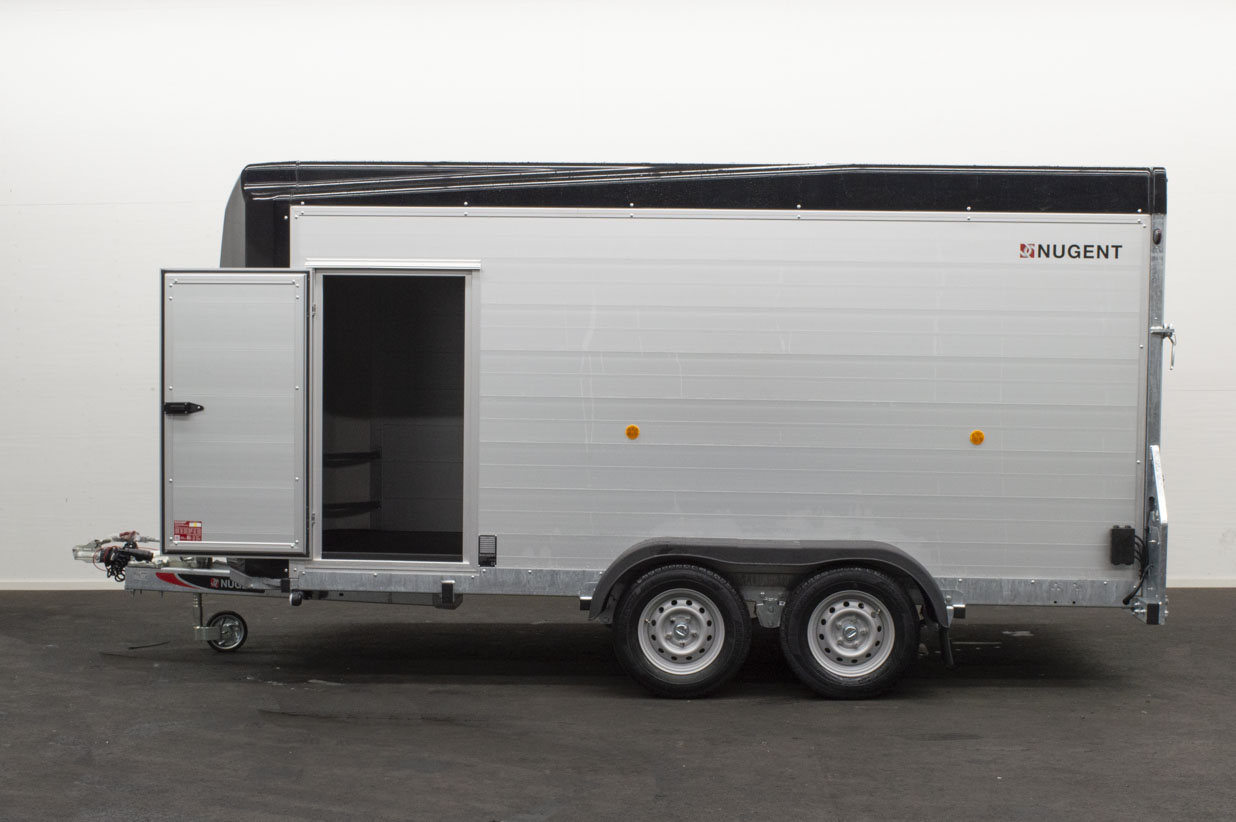 De Nugent Box is ontworpen met 25 mm geanodiseerde aluminium planken en een op maat gemaakte aerodynamische GRP-neus en dak. Dit zorgt voor een lichtgewicht, maar sterke en stijlvolle oplossing voor uw bedrijf. Met een laadhoek van 11? is deze aanhanger ideaal voor voertuigen en apparatuur met een lage bodemvrijheid. Alle modellen zijn standaard uitgerust met Nugent’s gepatenteerde Dual Drive™-ophanging, wat zorgt voor een verbeterde rijervaring en de aanhangerophanging naar een hoger niveau tilt.