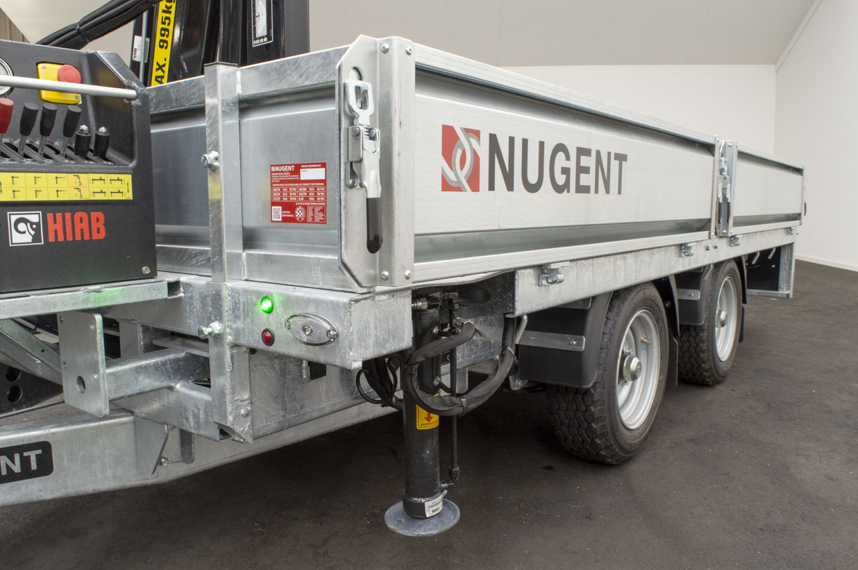 Nugent heeft samengewerkt met Hiab om een kraantrailer te ontwikkelen met een hefvermogen van 995 kg. Geschikt voor alle soorten hijswerkzaamheden, is de Nugent Hiab-kraantrailer ideaal voor boeren, bouwmaterialenhandelaren, handarbeiders, gemeentelijke diensten en hoveniers.