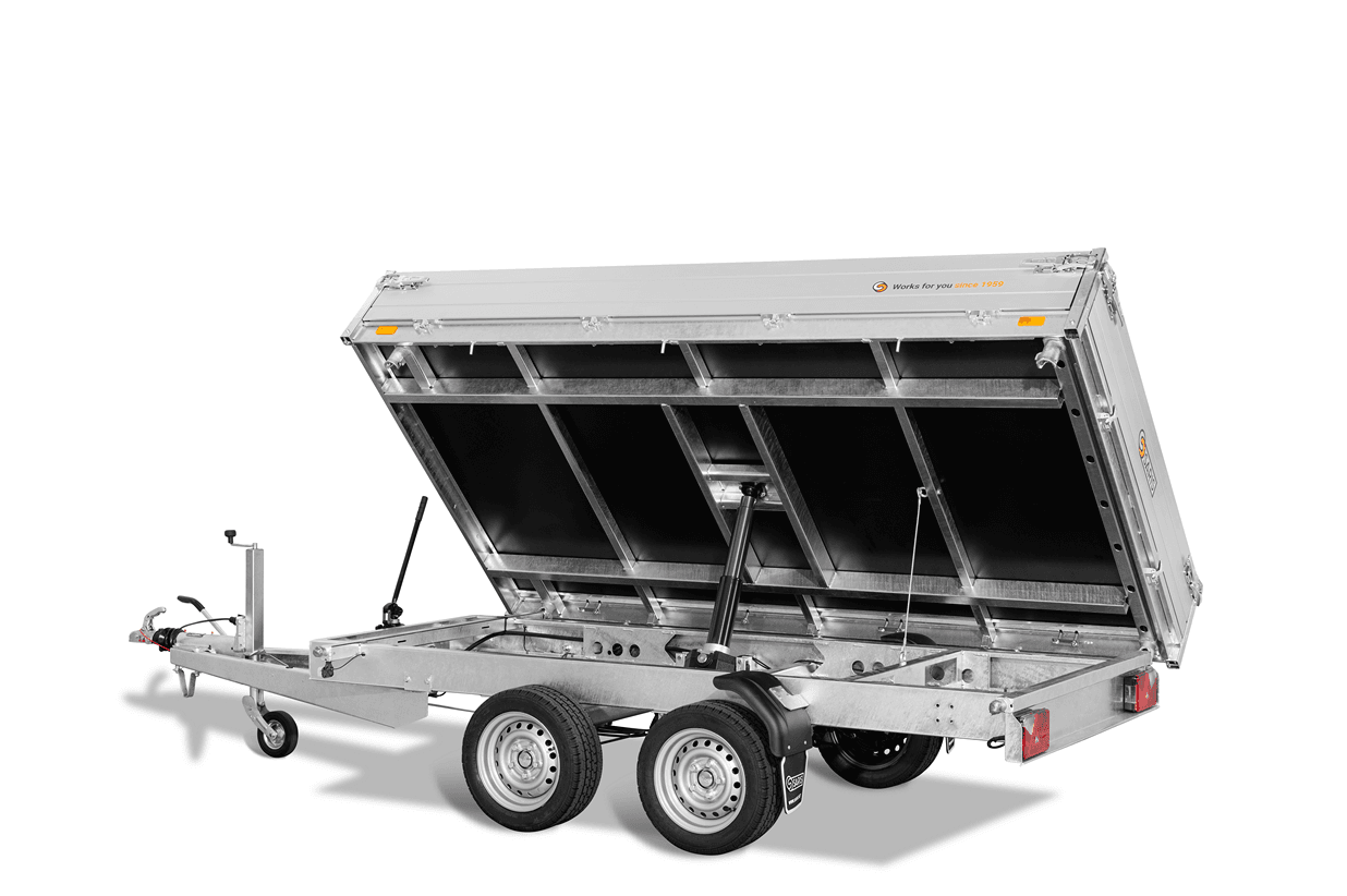 This Saris tipper trailer is the versatile solution for transporting various types of loads. Thanks to the tilting loading floor, your cargo is easily unloaded. The ideal workhorse for professionals. Whatever material you need to transport, the Saris tipper trailer handles it with ease!