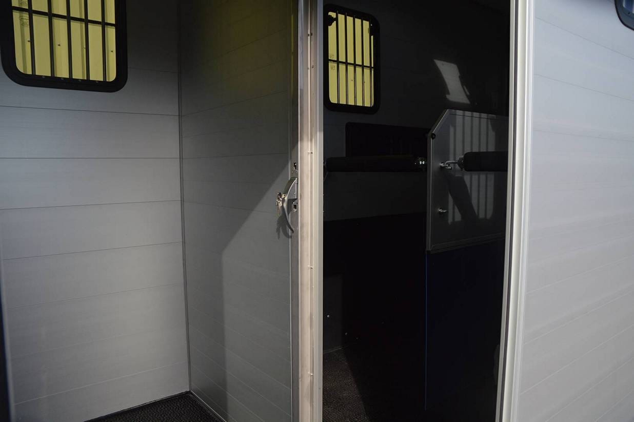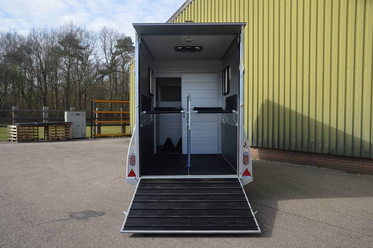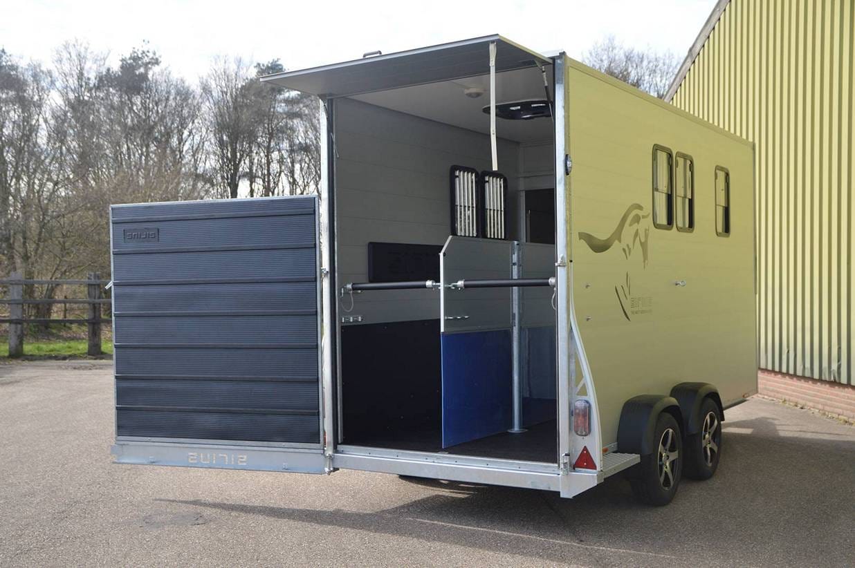 Met een lengte van 455 cm, breedte van 171 en hoogte van 242 cm is de S170 uniek in zijn soort. De S170 heeft standaard een grote kleed/verblijfsruimte van maar liefst 455x170x242 cm. De verblijfsruimte kunt u naar uw eigen inzichten inrichten. Het paarden gedeelte is voorzien van alle gemakken.