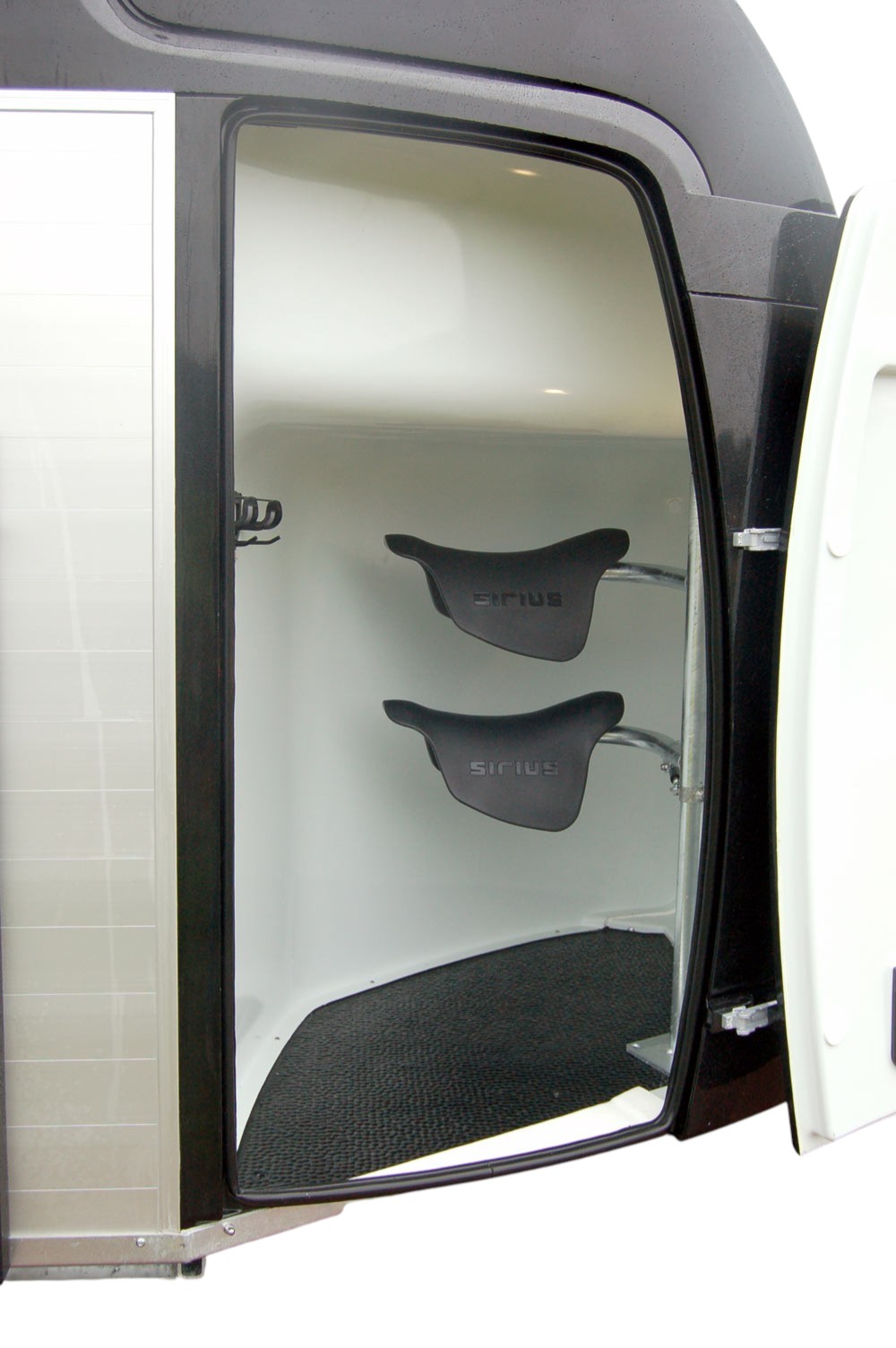 Het design van de trailer is een mix van ongekende schoonheid en brute kracht. Door het brede front van de trailer heeft het paard voorin een zee van ruimte wat enorm veel comfort met zich mee brengt zowel voor u als voor het paard. De mogelijkheden zijn ongelimiteerd bij dit model en de veelzijdigheid zal u jaren veiligheid, comfort en plezier brengen. Vanzelfsprekend heeft ook de S77 een Deur/klep combinatie. De wanden en de achterklep bij dit model zijn gemaakt van aluminium.