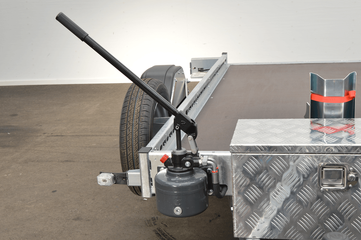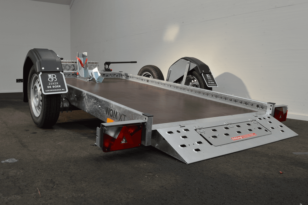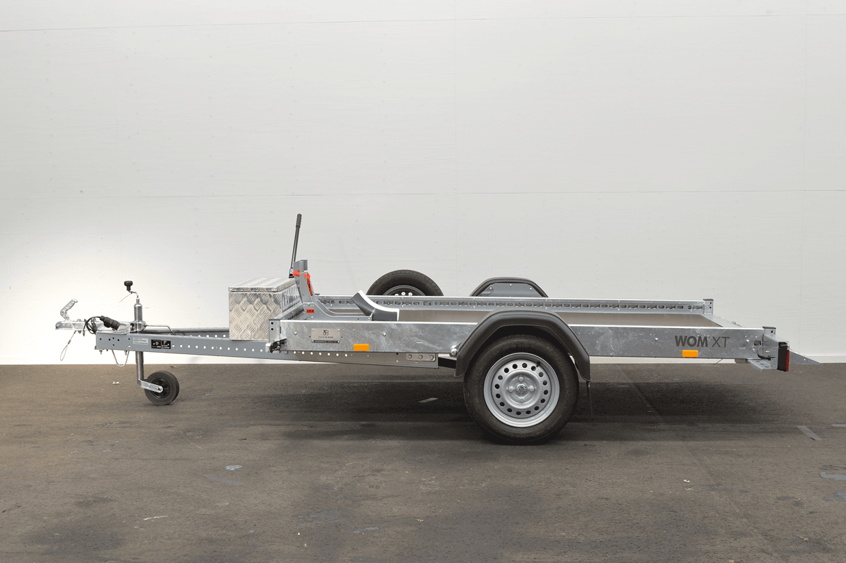 Met zijn hydraulisch zakkende systeem is deze WOM XT motortrailer ideaal voor het vervoeren van een zware motor. U hoeft zich geen zorgen meer te maken over het veilig op de trailer krijgen van uw motor; u hoeft alleen maar op het platform te rijden, dat gemakkelijk omhoog en omlaag te brengen is.